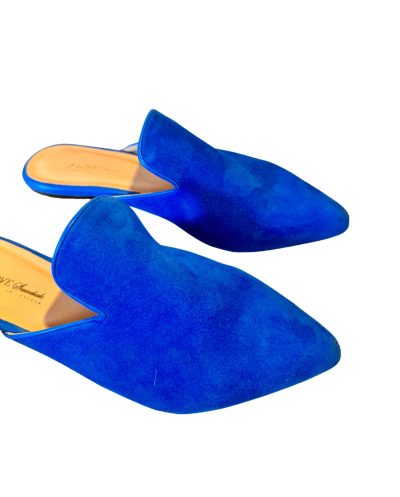 Blue Suede Leather Mules