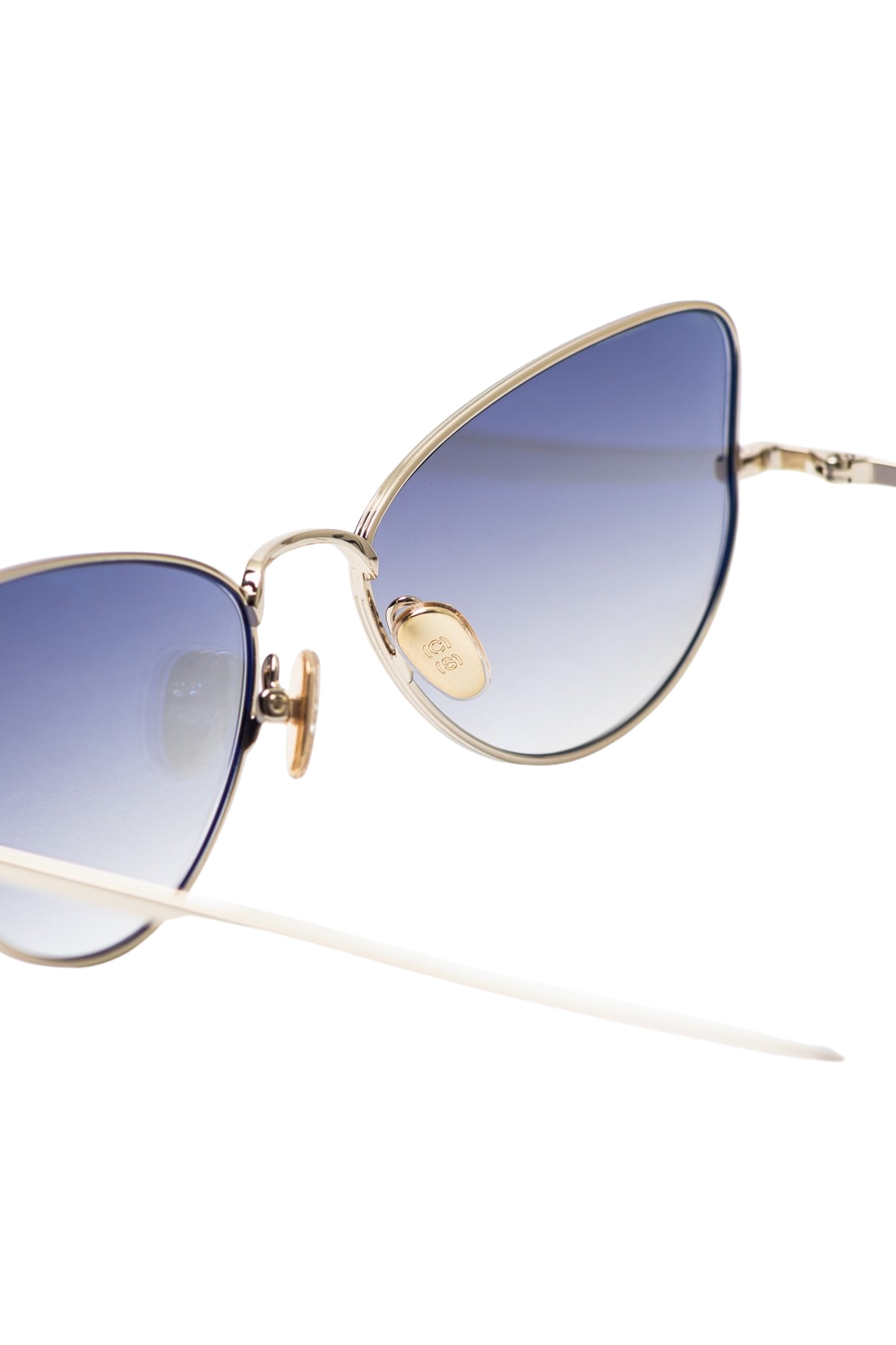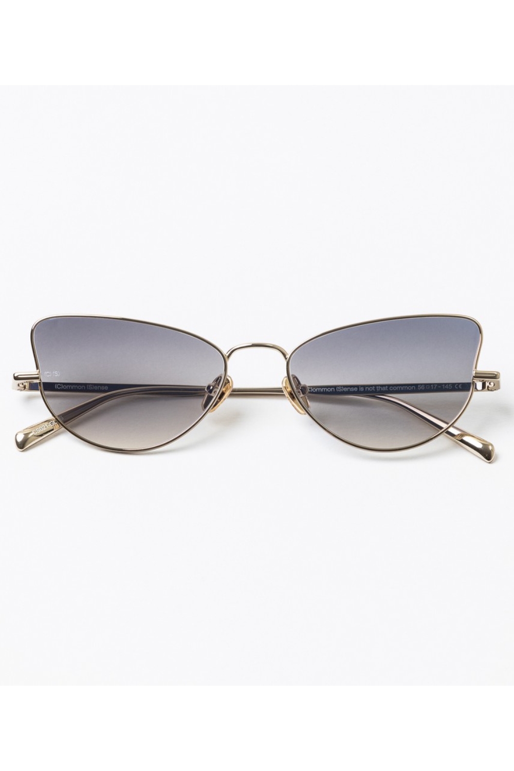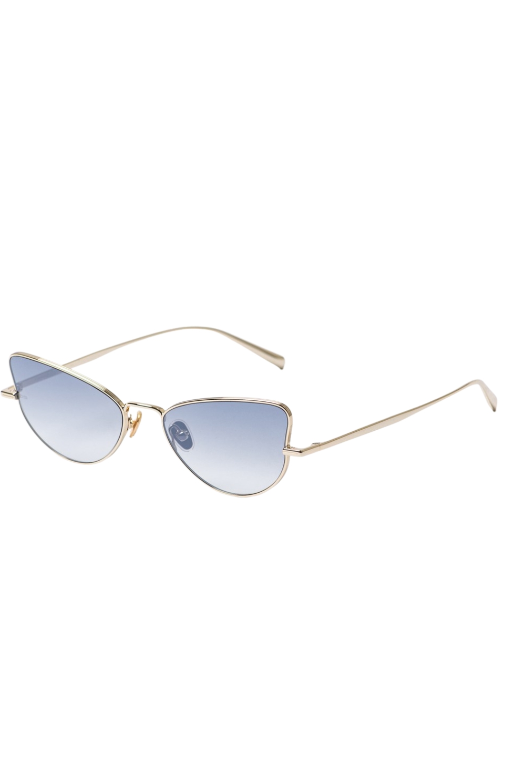 Made of metal , 021 in Shiny Gold with Brown Gradient Flash Silver lenses and anti-reflective coating is a cat eye shaped sunglass frame.