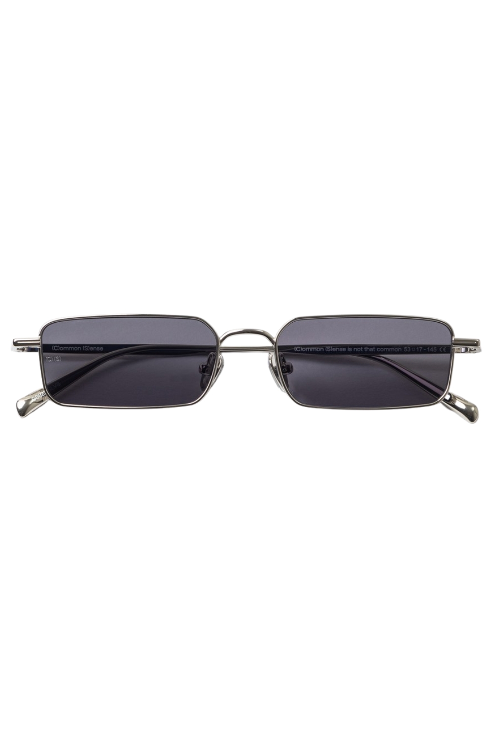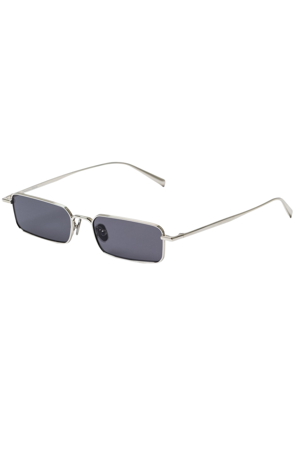 Made of metal , 022 in Shiny Silver with Dark Grey lenses and anti-reflective coating is a rectangular shaped sunglass frame.