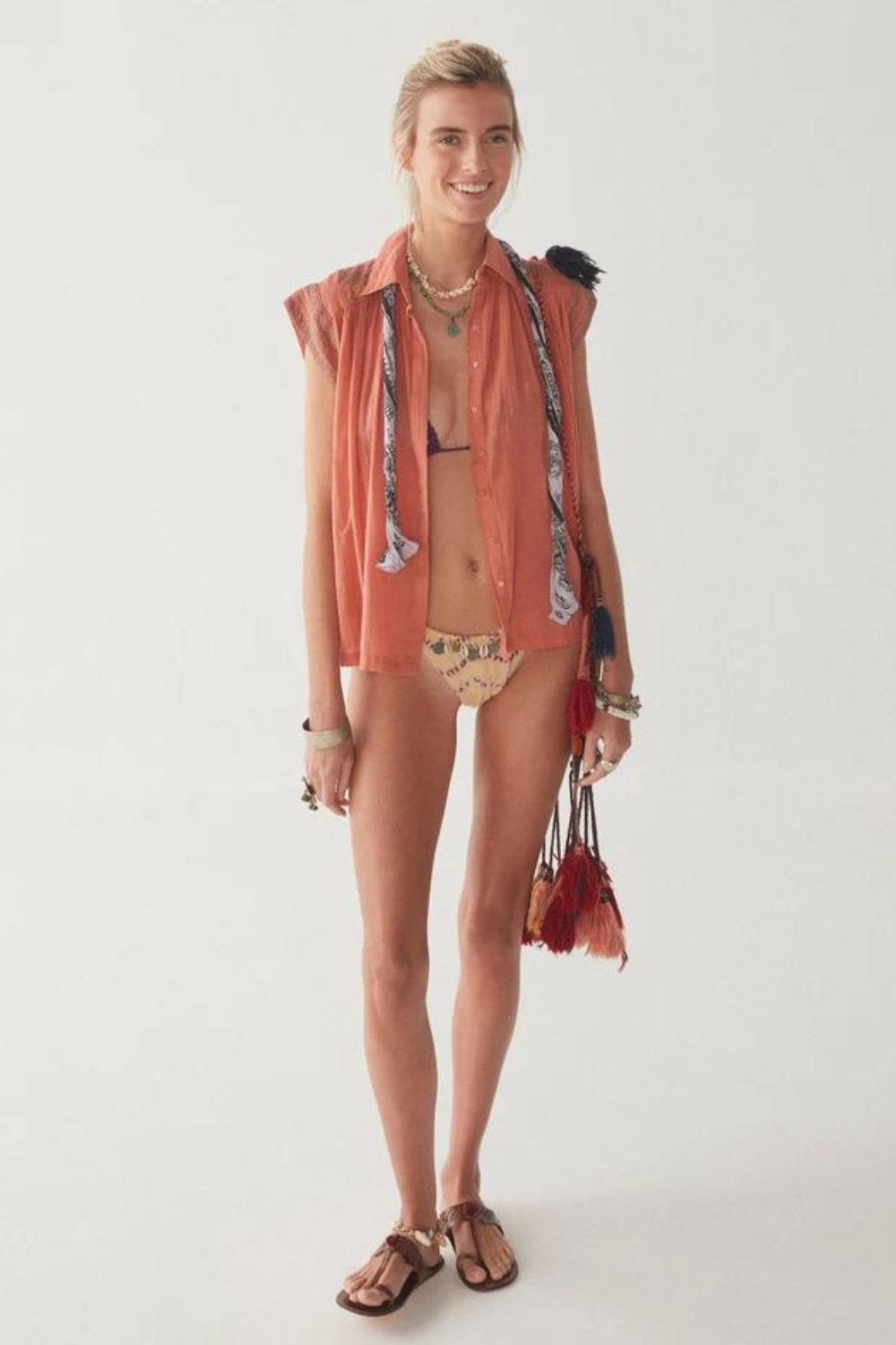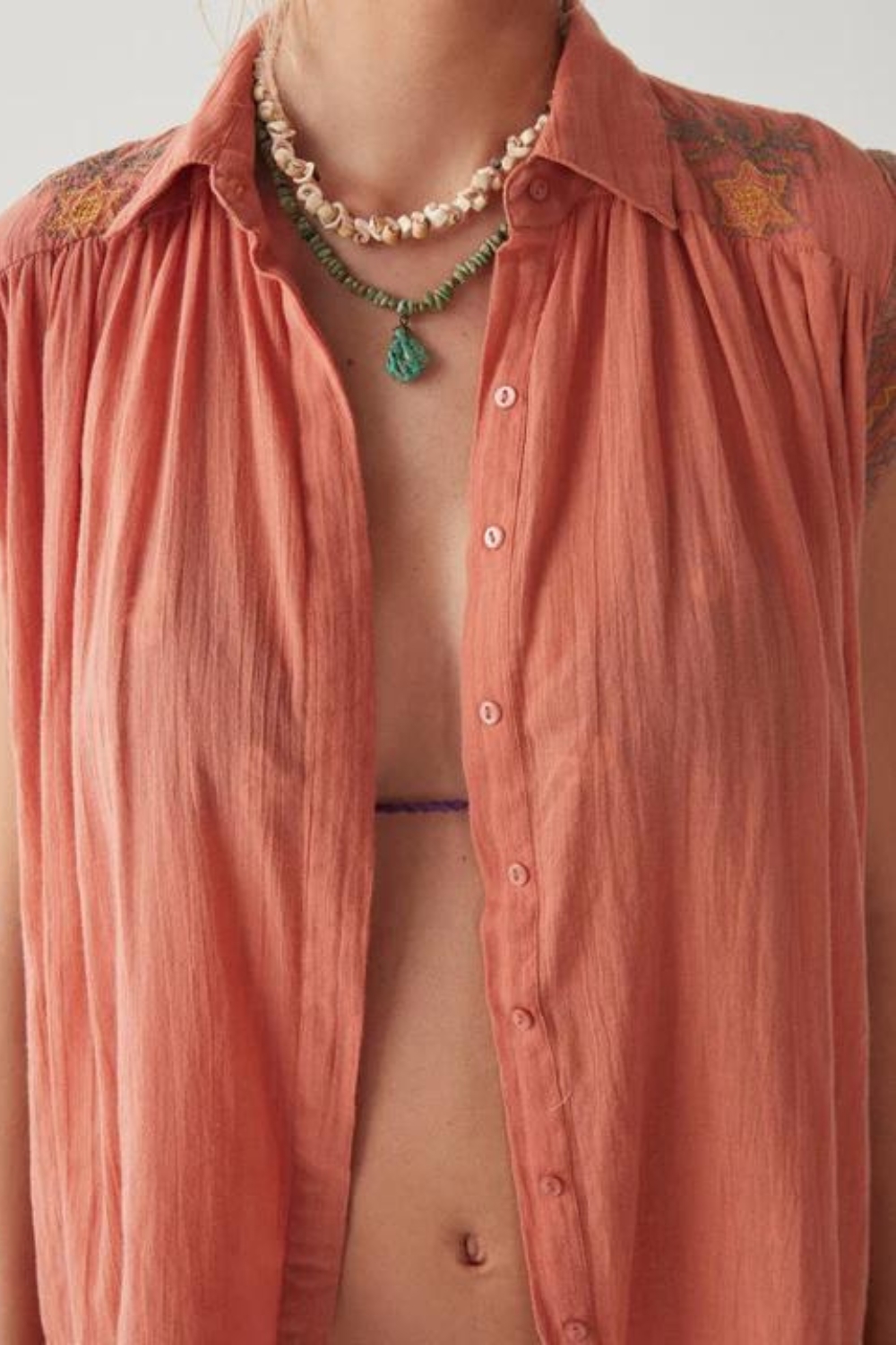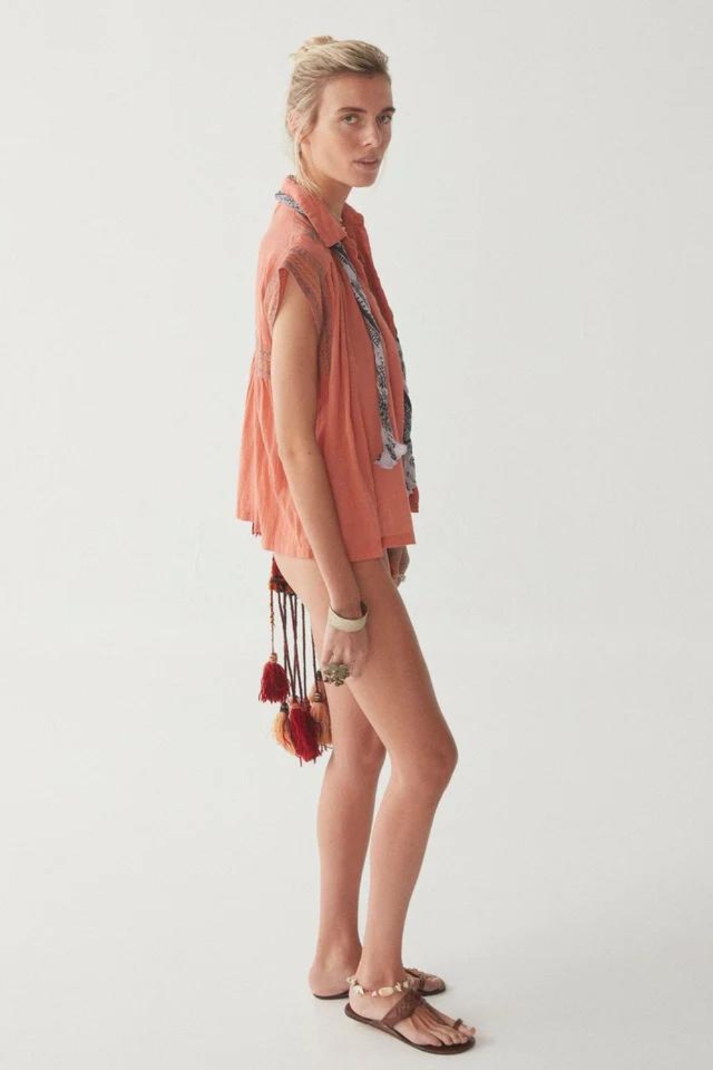Effortless cotton gauze short-sleeve blouse perfect for those warm warm summer days apres water-dipping at playa Salinas.