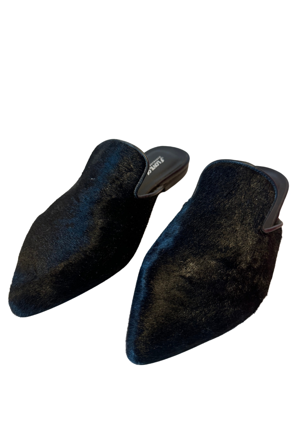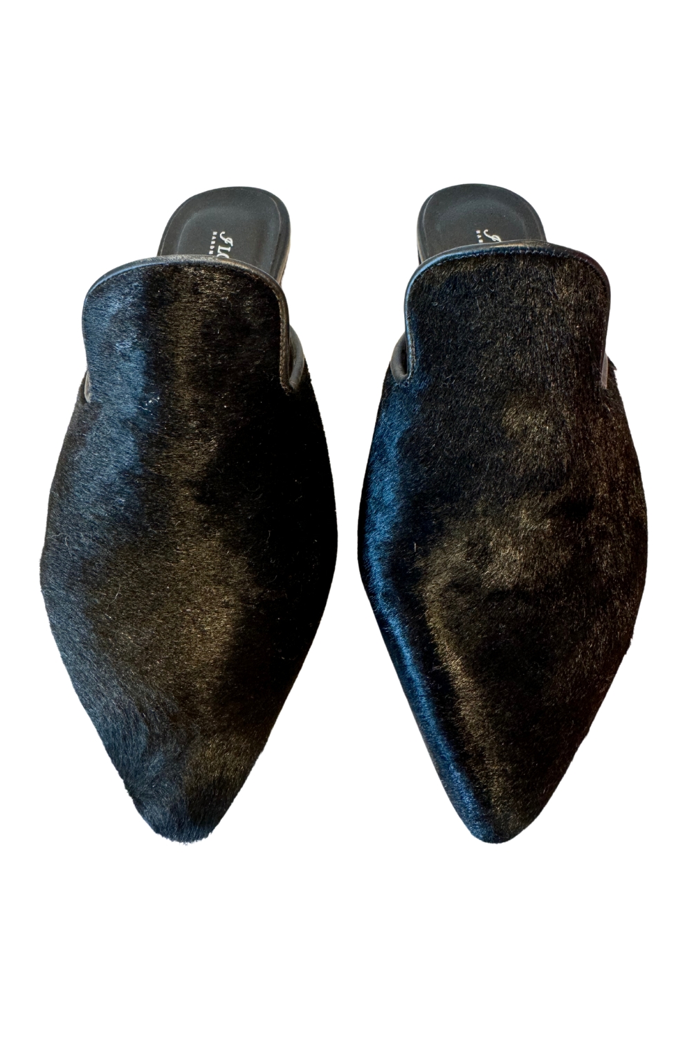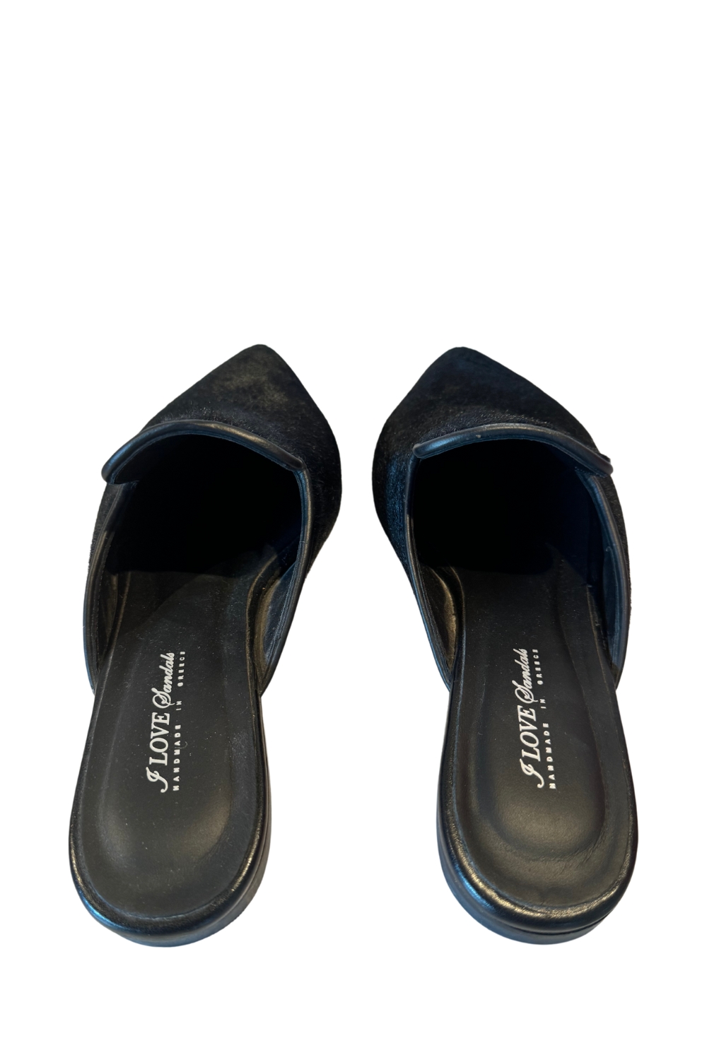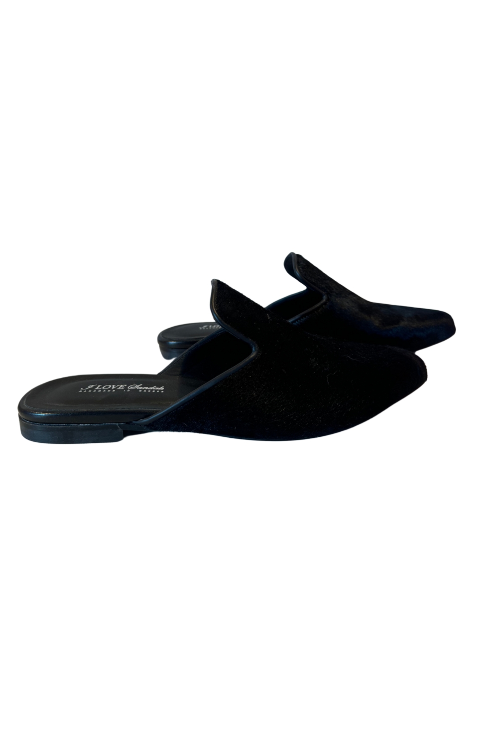 Black pony leather mules by I Love Sandals.