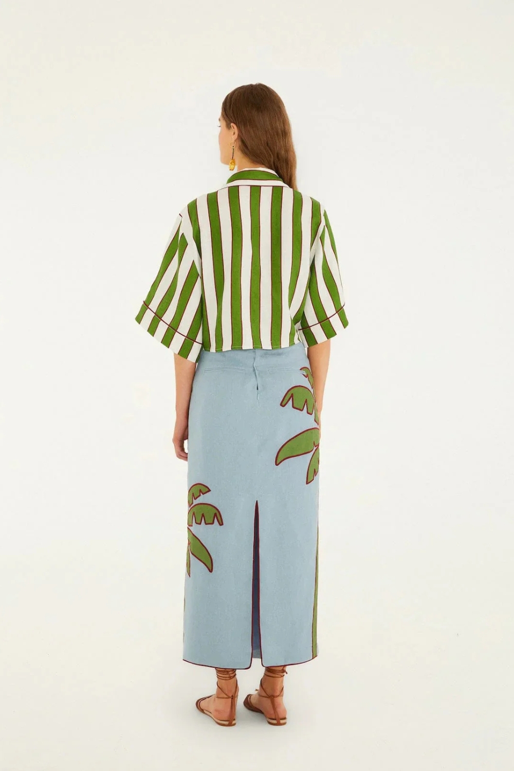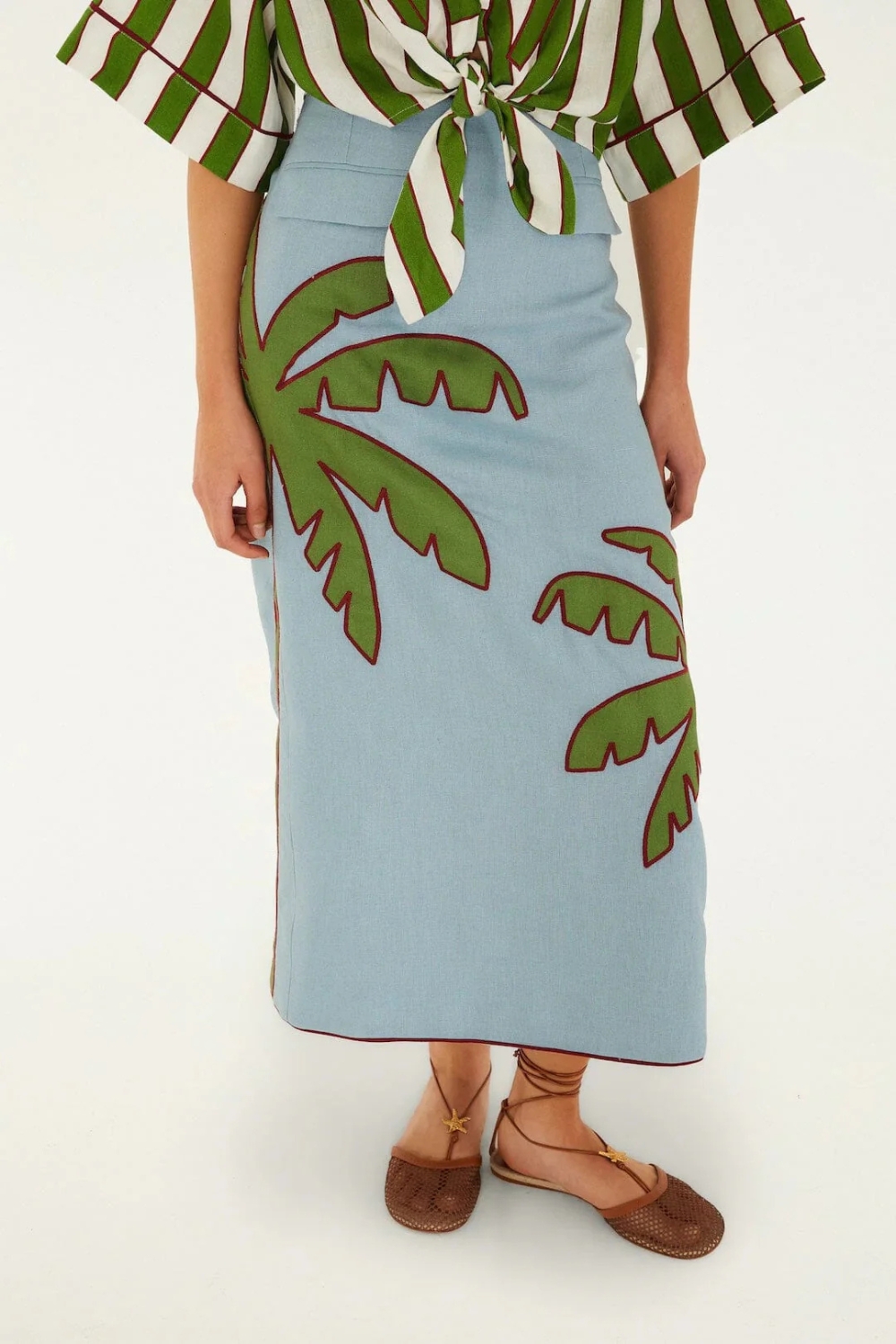 Embrace effortless tropical charm with the Blue Embroidered Palm Tree Euroflax™ Premium Linen Maxi Skirt from FARM Rio. Crafted from breathable, sustainably sourced Euroflax™ linen, this skirt flows gently with a relaxed silhouette that moves with you. Delicate palm tree embroidery dances across the deep blue fabric, adding a playful touch of nature-inspired artistry. Perfect for sunlit days, it blends comfort and vibrant spirit in every stitch.
