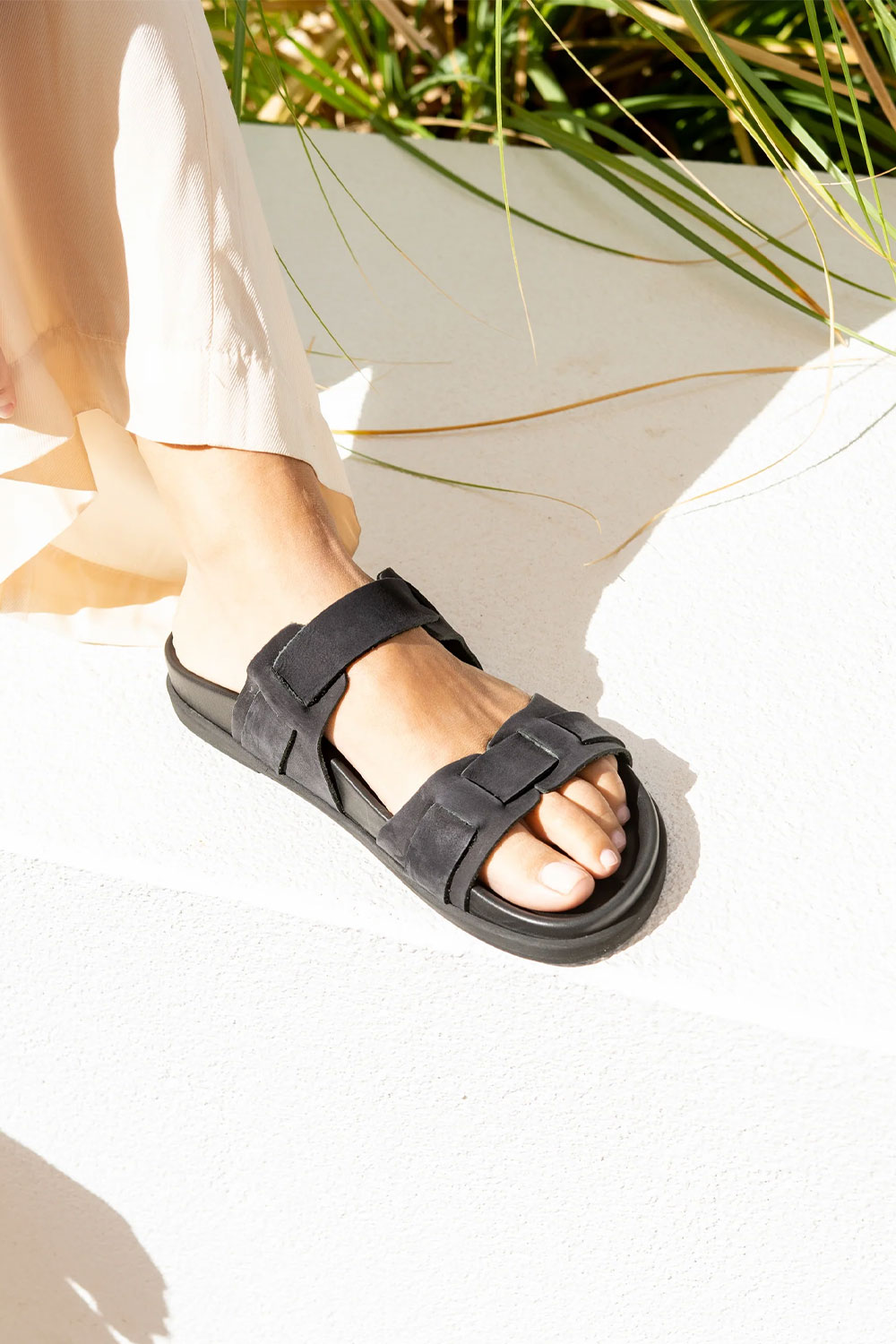 The CORFU style has two threaded main straps and subtle curves on the sides. A classic look elevated to a more elegant design. The soft leather footbed offers great comfort.
