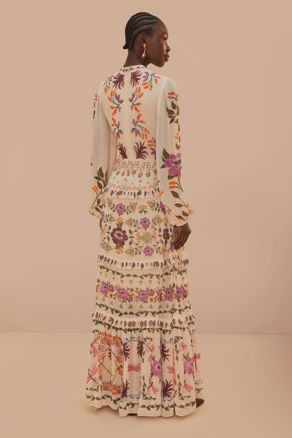 Cream Winter Garden Ruffle Maxi Dress