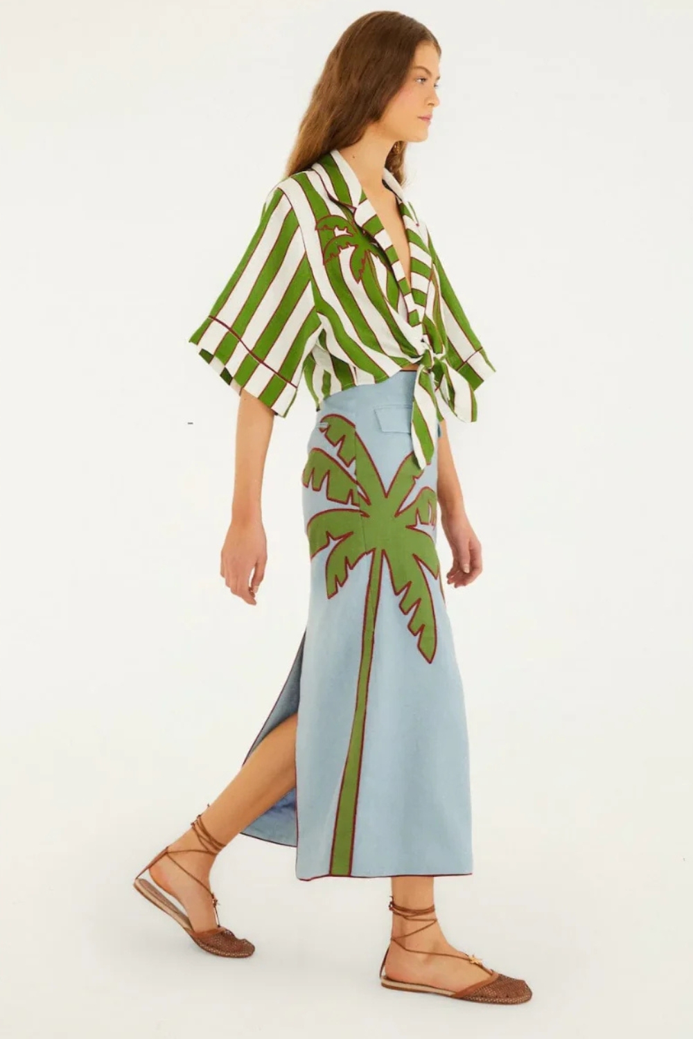 Embrace effortless charm with the Green Spring Stripes Embroidered Euroflax™ Premium Linen Crop Top by FARM Rio. Crafted from breathable, eco-friendly Euroflax™ linen, this playful piece features vibrant green stripes intertwined with delicate embroidery that dances across its soft fabric. The flattering V neckline and cropped silhouette create a fresh, airy feel perfect for warm days, while the natural texture and sustainable fibers bring both comfort and conscious style to your wardrobe.