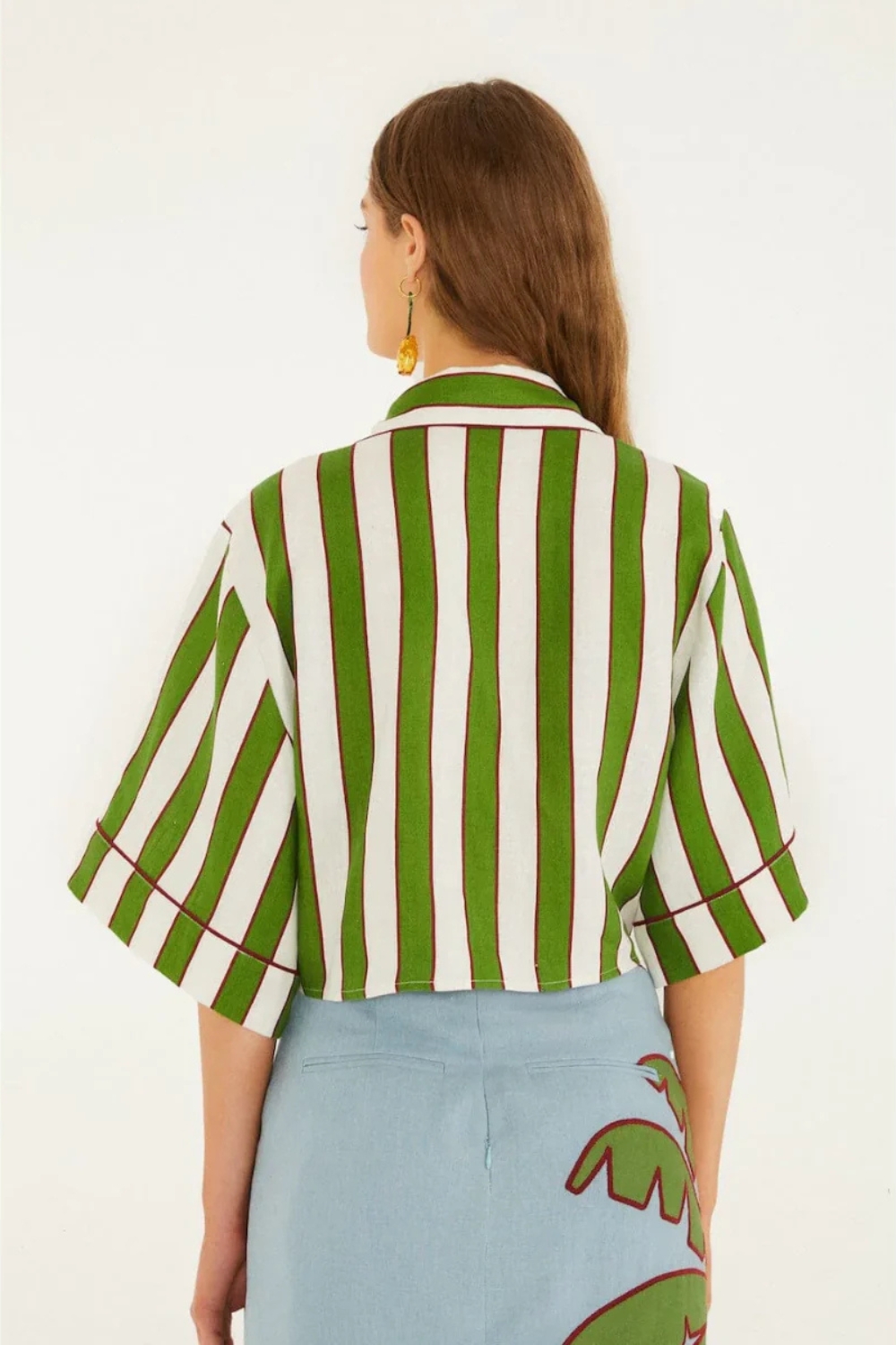 GREEN SPRING STRIPES EMBROIDERED EUROFLAX™ PREMIUM LINEN CROP TOP