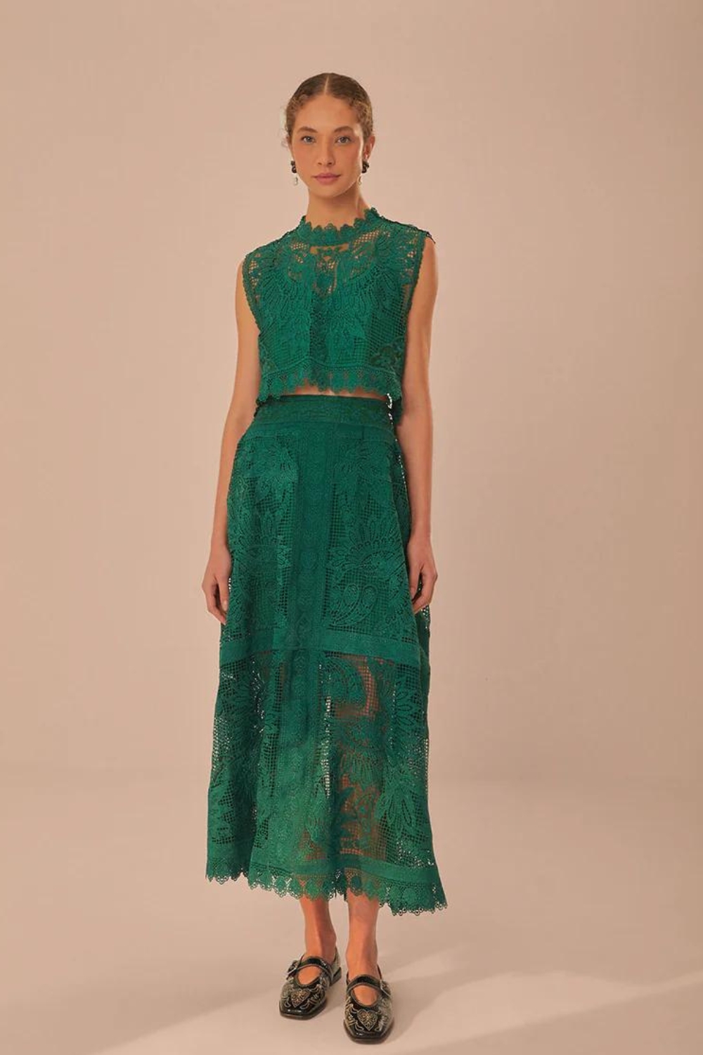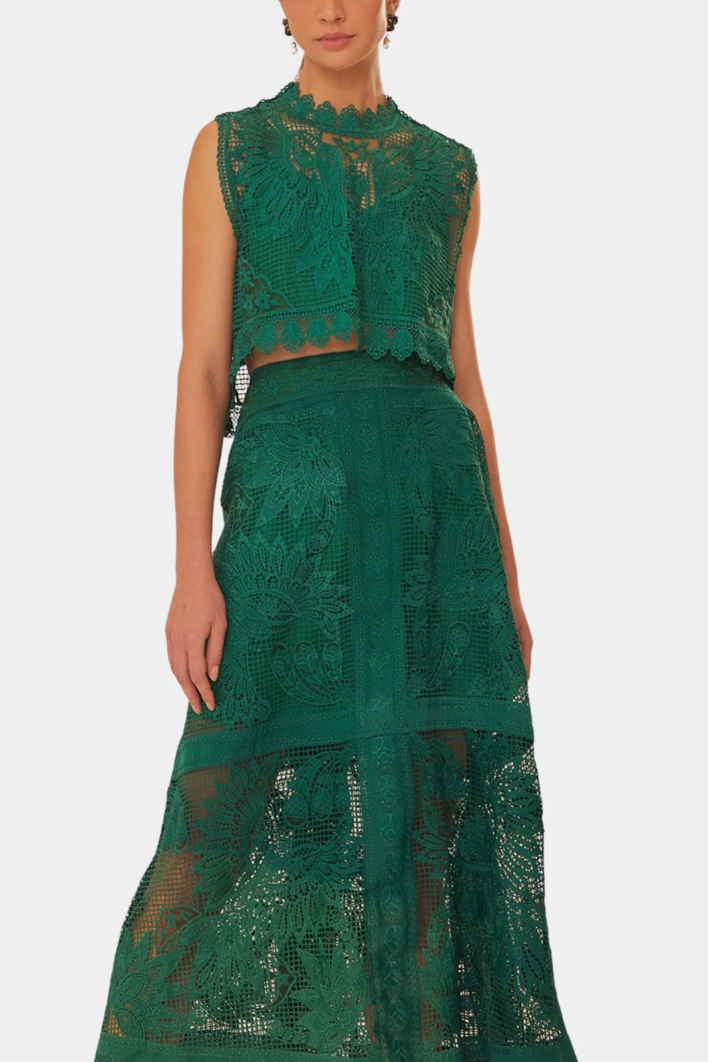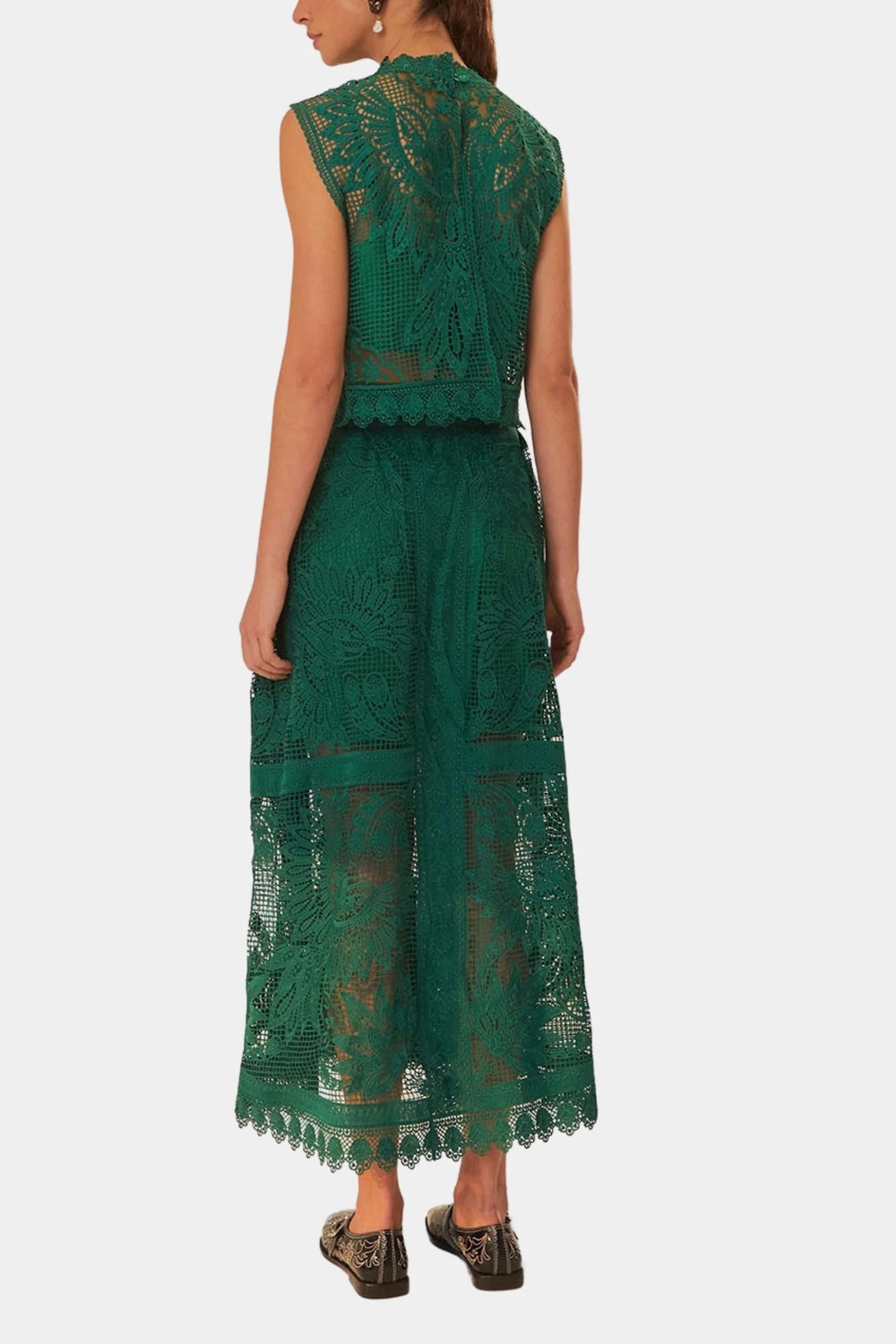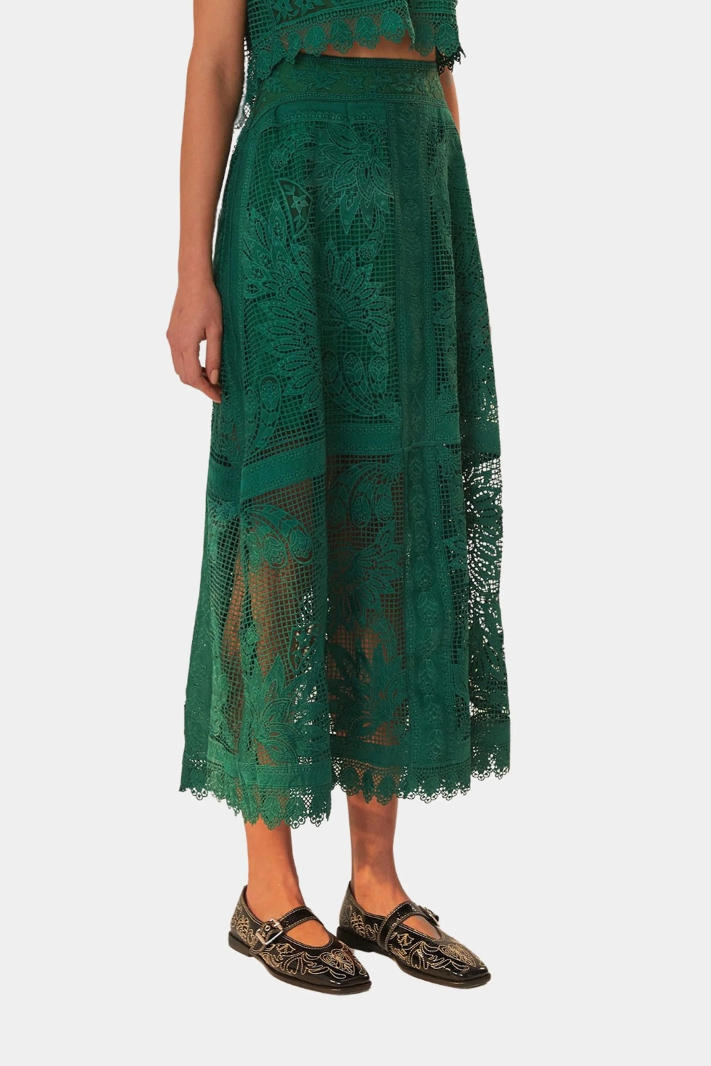 Green Toucan Guipure Lace Midi Skirt