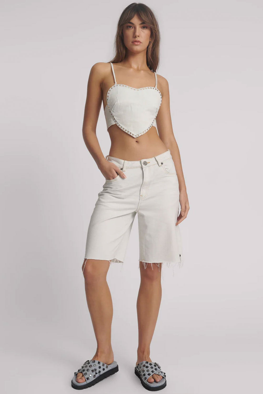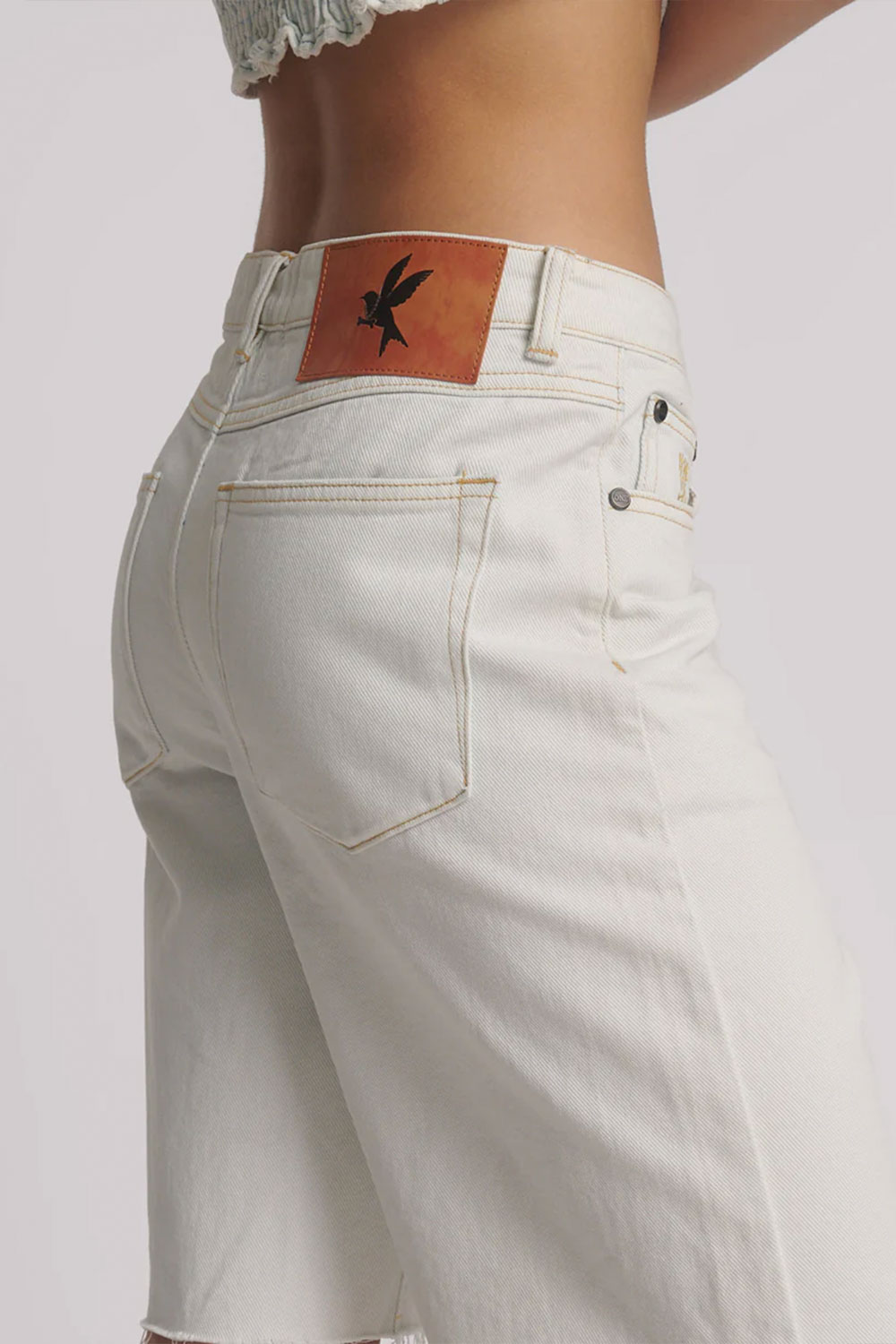 he LE CATS MID WAIST WIDE LEG BOYFRIEND SHORTS.
