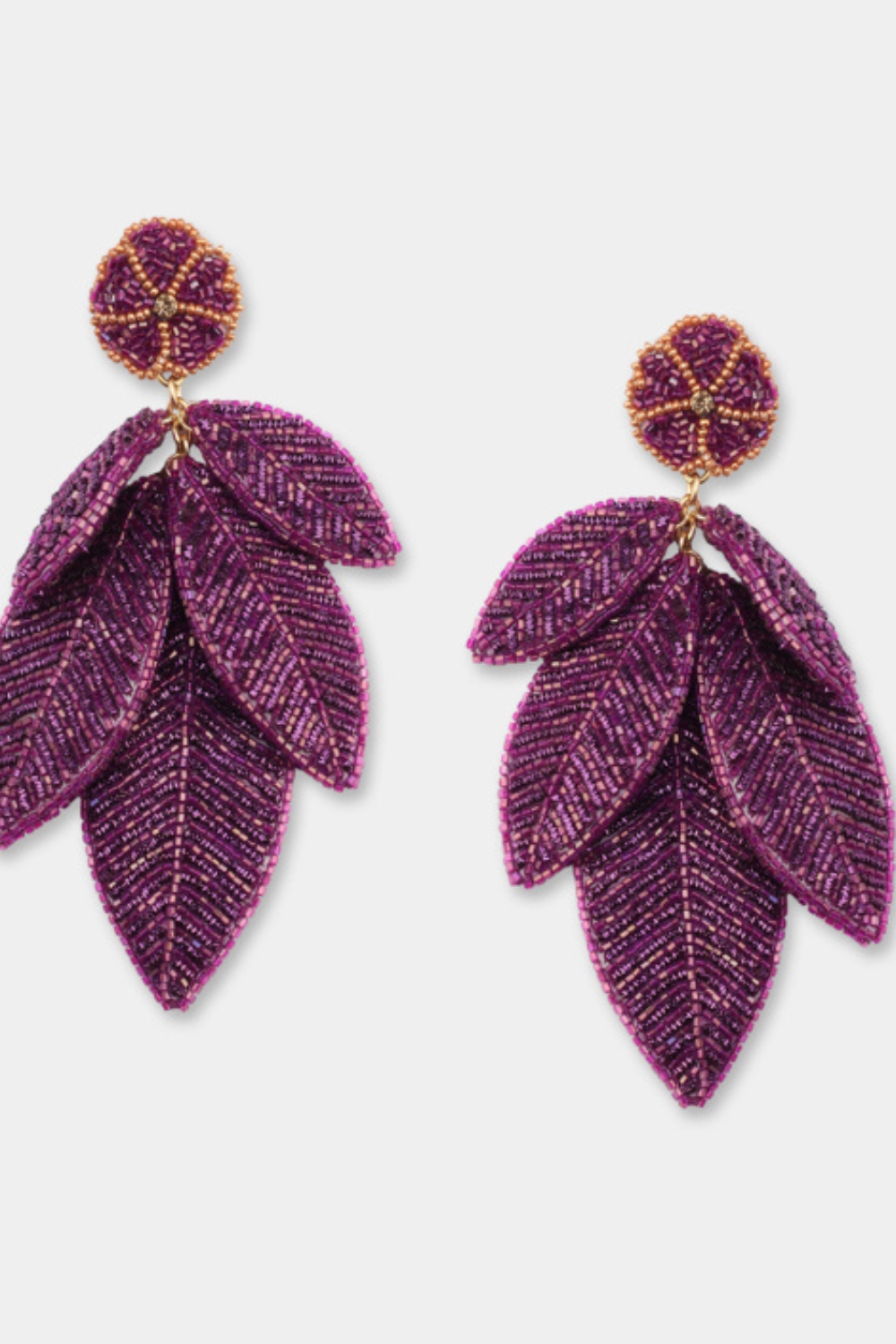 The purple Leaf earrings are hand-embroidered in the shape of a bouquet of leaves, a true tribute to nature. Made up of five finely assembled leaves, they create a subtle movement. They are available in several colors, each more vibrant than the last!