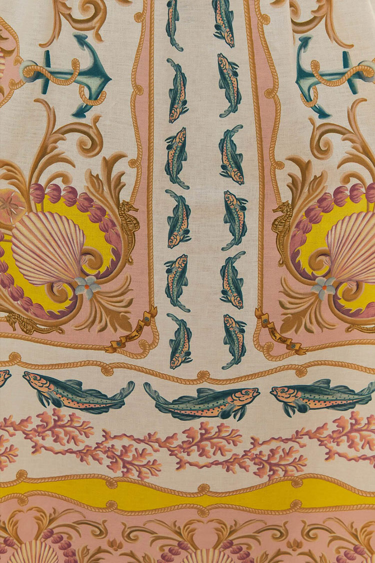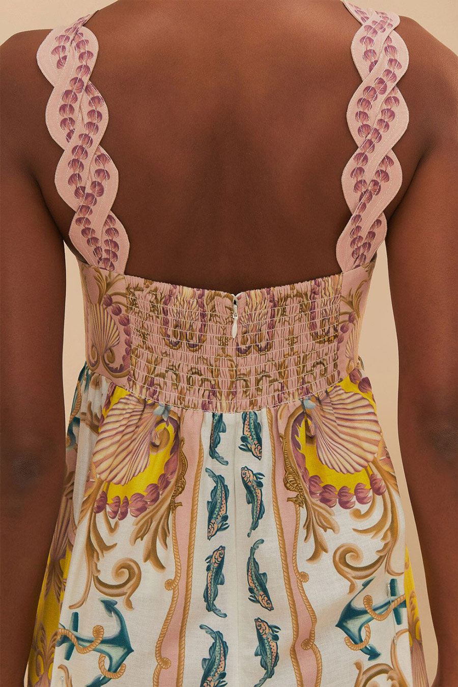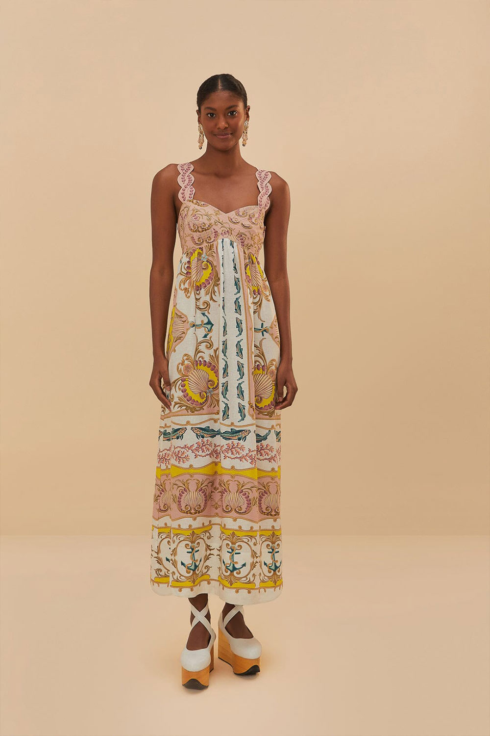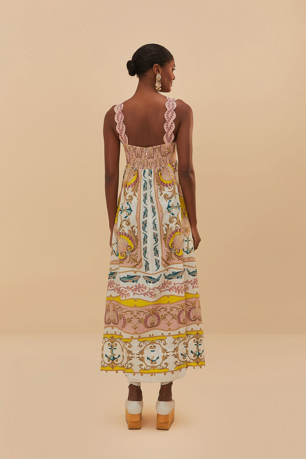 Step into a coastal dream with the Off-White Maritime Magic LENZING™ ECOVERO™ Euroflax™ Maxi Dress. Its enchanting shell motifs and vibrant fish patterns dance across a canvas of gentle off-white. The sweetheart neckline, adorned with delicate ruffled straps, adds a playful elegance. Crafted from responsible materials, this dress captures the essence of sunlit days and breezy adventures, blending style and comfort effortlessly. LENZING™ ECOVERO™: the eco-responsible fibers generate up to 50% lower emissions and water impact compared to generic viscose.