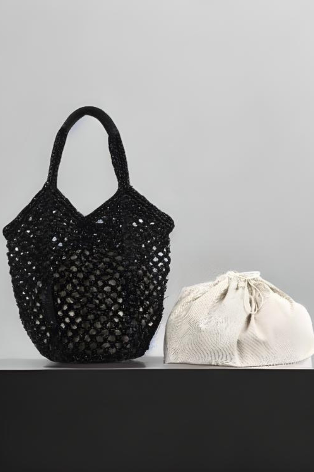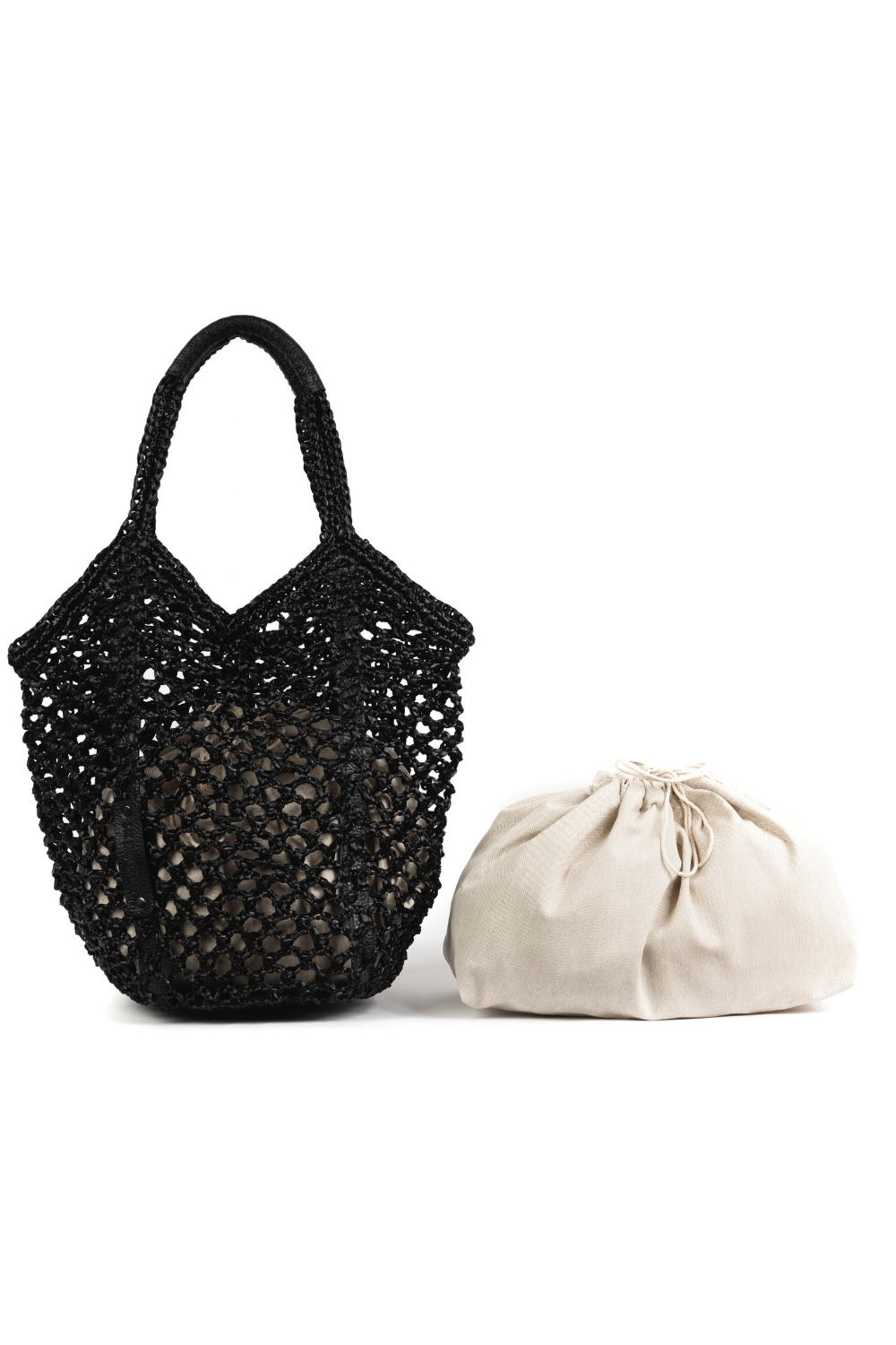 Mesh shoppping bag, handmade with rafia and leather handles by G&K Handcrafters.