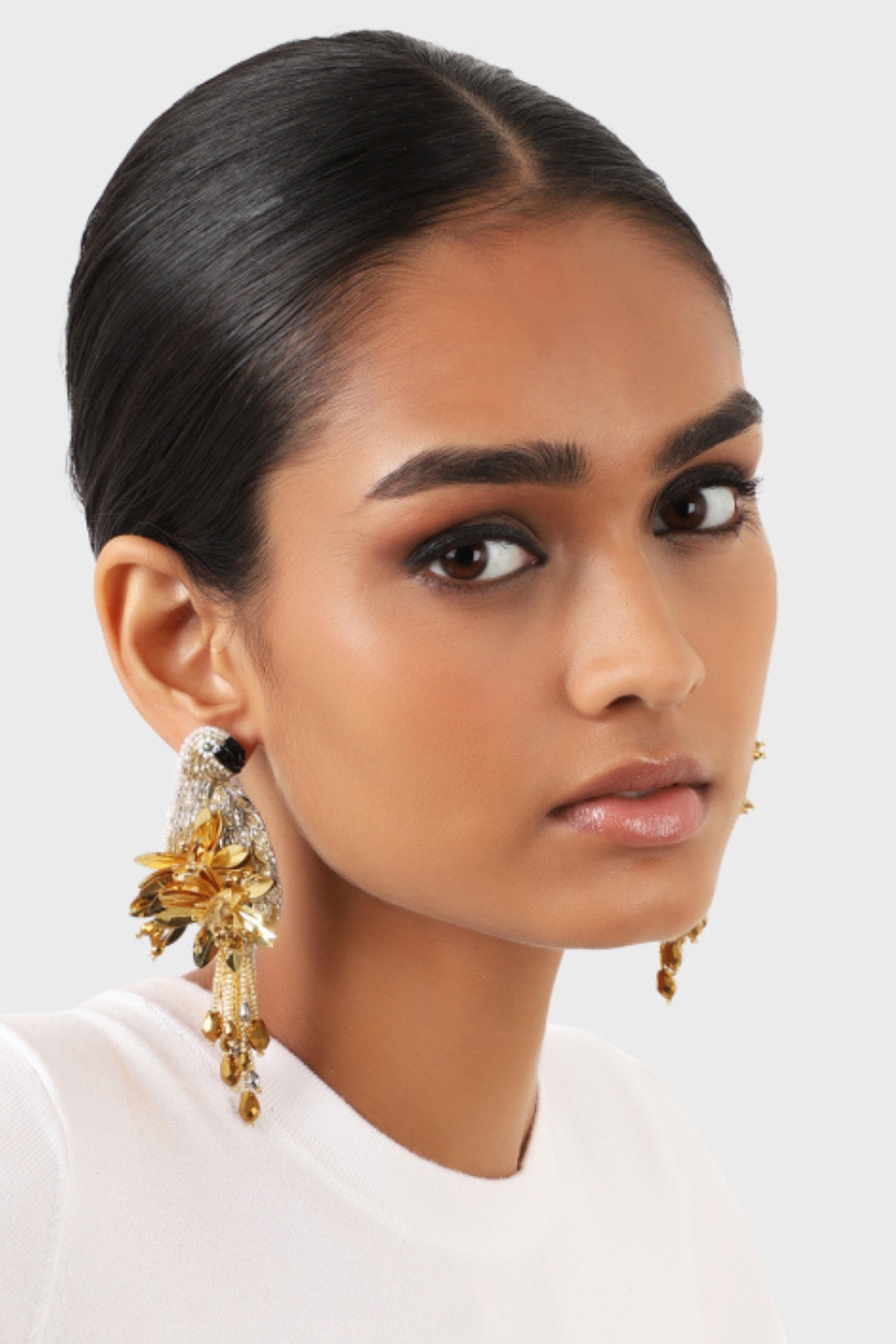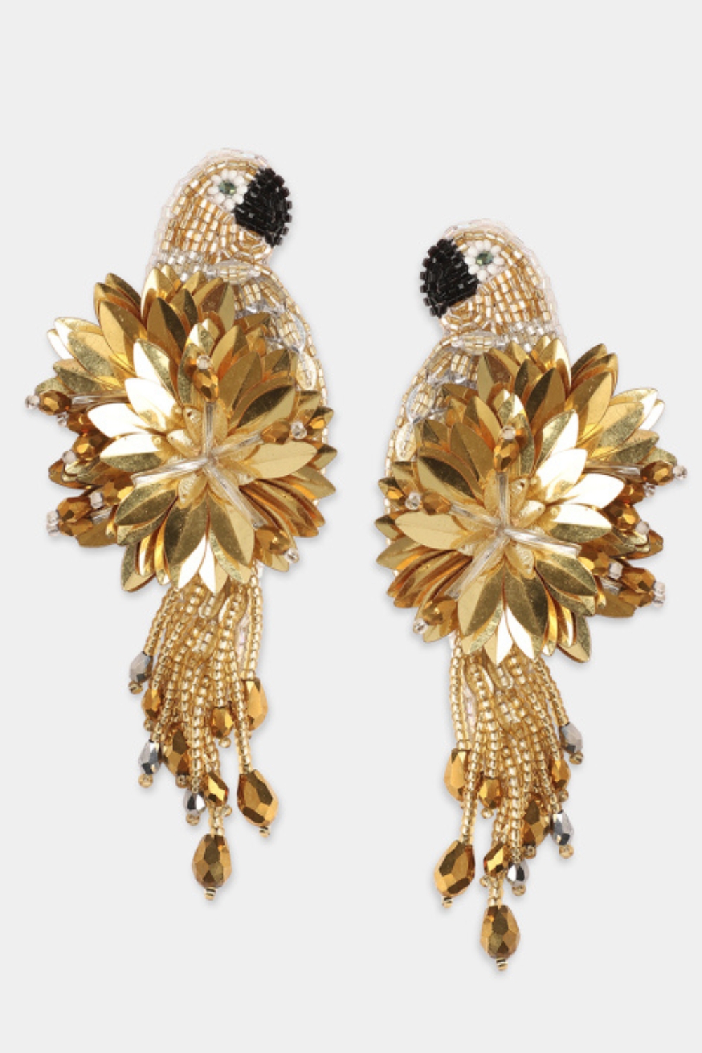 Maxi bird earrings alert! Light as a feather, these gold maxi Parrot Earrings are the ultimate statement pieces.