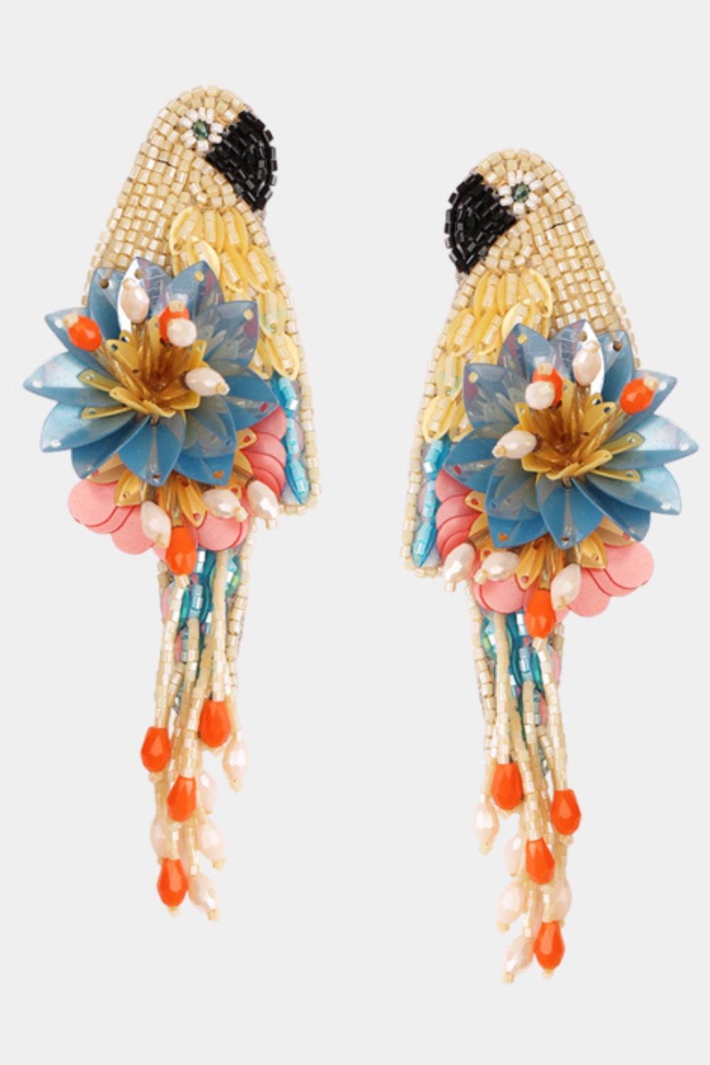 Maxi bird earrings alert! Light as a feather, these maxi sand Parrot Earrings are the ultimate statement pieces.