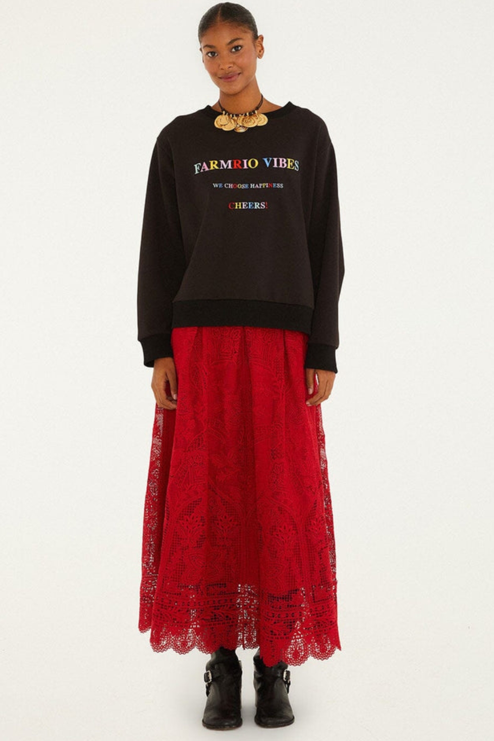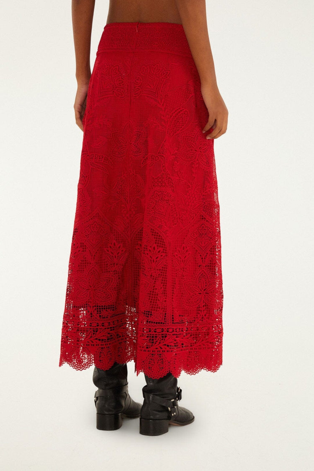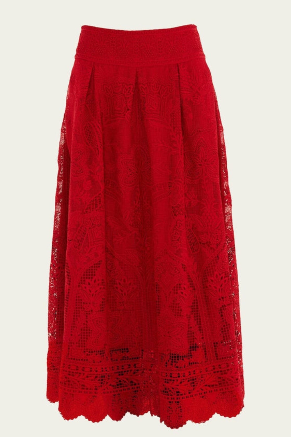 The Red Guipure Boho Garden Skirt is a vibrant celebration of intricate craftsmanship and bold color. This flowing skirt features delicate guipure lace with captivating floral and geometric patterns that play beautifully with light and shadow. Its long, airy silhouette sways with grace, blending a romantic garden-inspired elegance with a carefree boho spirit. The scalloped hem adds a tender, artistic finish, perfect for weaving warmth and playfulness into any outfit.