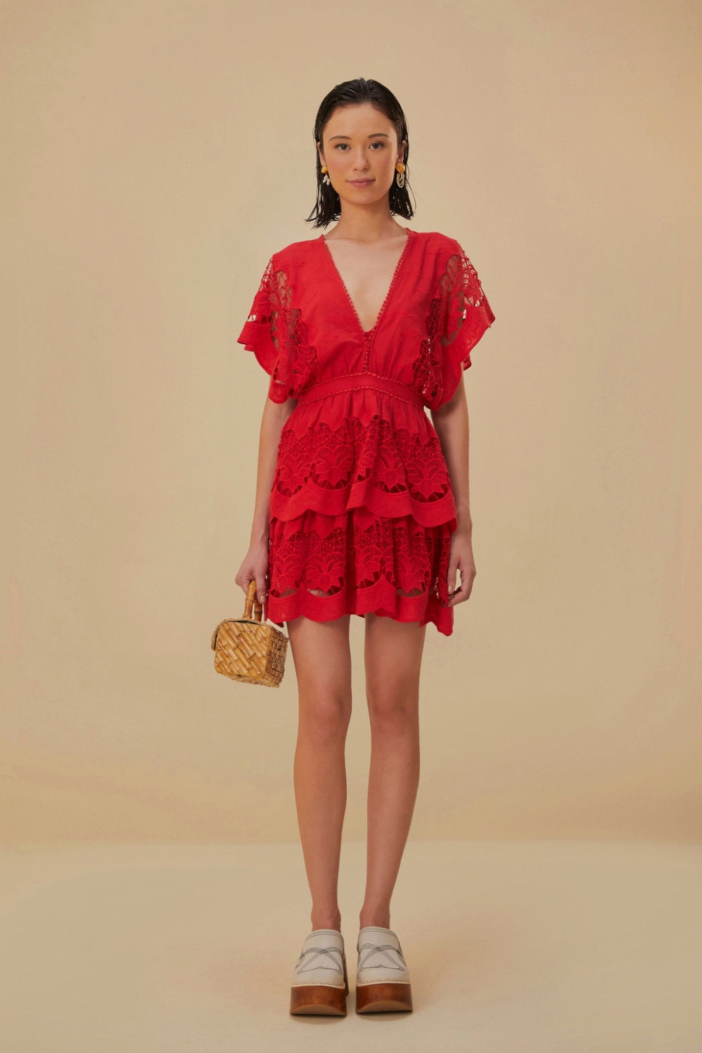 Red Richelieu Mini Dress Farm Rio