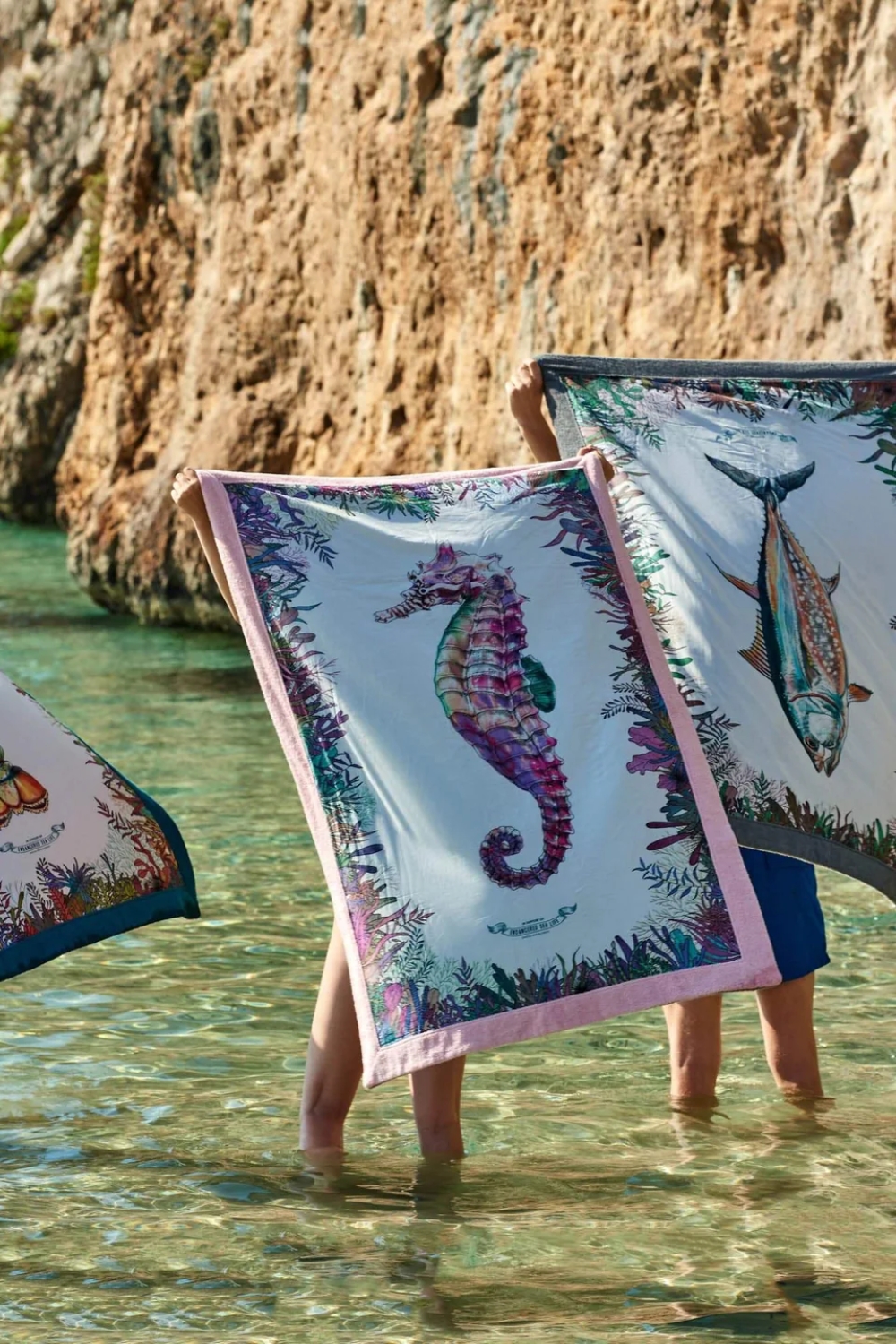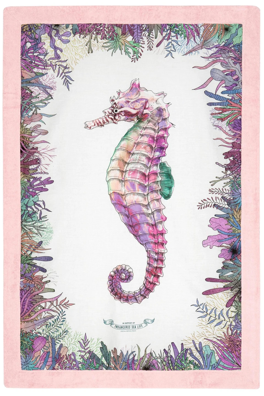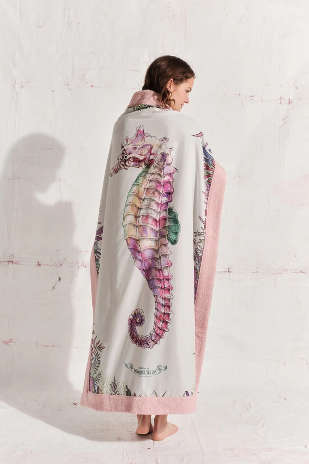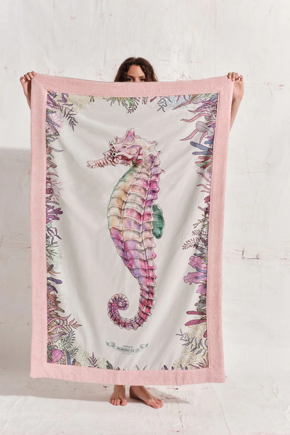 Seahorse is one of six limited edition prints created to raise awareness for the endangered sea life of the Mediterranean Sea, which faces serious threats from overfishing, climate change, and pollution. Ten percent of every sale will go to WWF Greece to support their efforts in protecting marine animals in the Mediterranean. Like all of our Signature beach towels, the Seahorse towel is made of exceptional quality Egyptian cotton and cotton poplin which makes it very soft and absorbent.